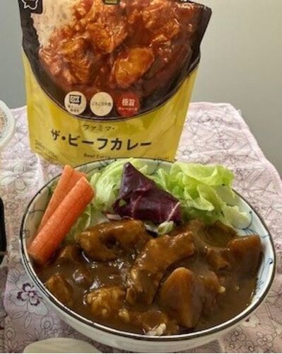 今日も楽天限定ポイントを使うべく、ファミマでお昼用の買い物。 昨日のレタスサラダの残りと、家から持って来たご飯、そしてビーフカレー! レンジに立てて入れて温めることができます。器を汚したくない場合はこのままスプーンで食べることもできるしね!…