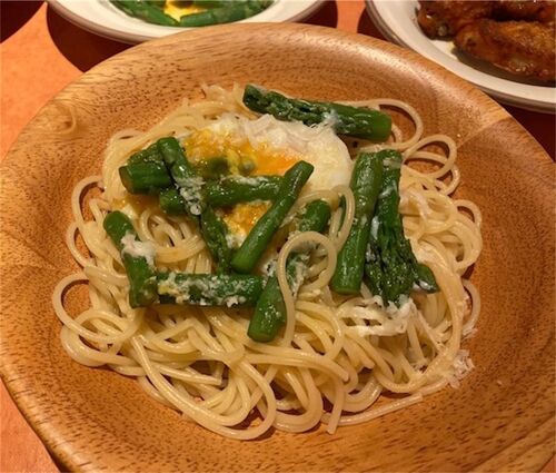 またかーい! はい、どんだけサイゼリヤ好きやねん、なシニア夫婦です。 ガーデンサラダを頼むことが多いですが、今日はチキンのシーザーサラダ、Lサイズ500円(税込)パルメザンチーズがこれでもかってくらいかかってて、美味しい❣️ 夫はパルマ風スパゲッテ…