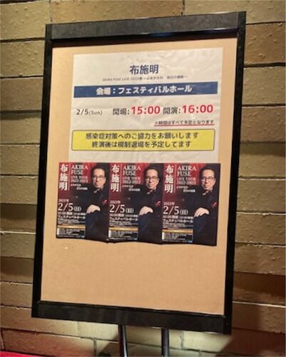 さて、行ってきました。昭和世代なら誰でも知っている歌うま歌手、布施明さんのコンサート! 「AKIRA FUSE LIVE TOUR 2022-2023 よみがえれ昔日(せきじつ)の情熱」 今回は、友人二人とのオババ3人で参加しました。2月5日のフェスティバルホール…
